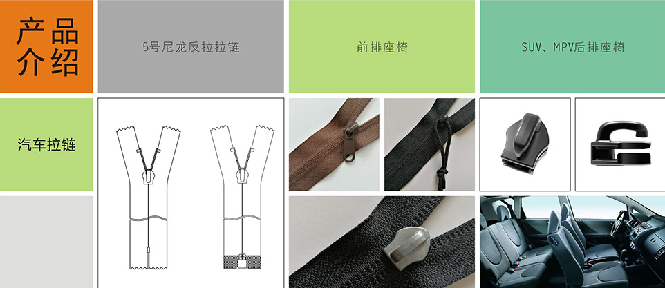 我們提供汽車專用拉鏈、標識扣、標識嘜、粘扣帶/刺毛帶,織帶/松緊帶,塑料扣件等其他汽車內飾、汽車座椅系統部件。